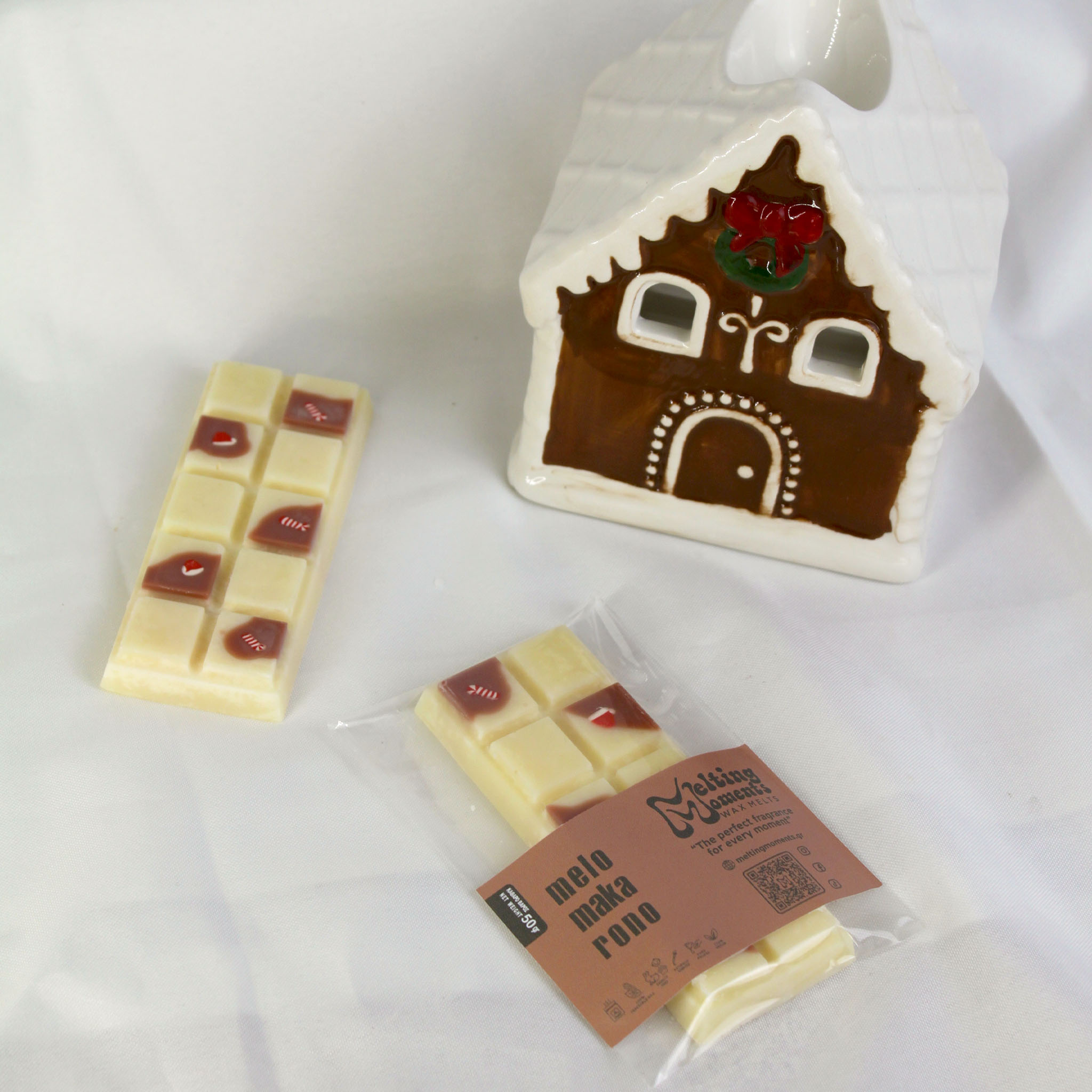 Το άρωμα μελομακάρονο είναι γλυκό και απολαυστικό, θυμίζοντας τον αγαπημένο εορταστικό εδέσμα. Καθώς λιώνει, γεμίζει τον χώρο με την γλυκιά αρωματική αύρα των μελομακάρονων, με νότες από μέλι, κανέλα, καρύδια και αμύγδαλα. Είναι ιδανικό για να δημιουργήσετε μια ατμόσφαιρα ζεστασιάς και γιορτινής απόλαυσης, κατάλληλη για τις γιορτές ή απλά για να απολαμβάνετε μια γλυκιά διάθεση στον χώρο σας.